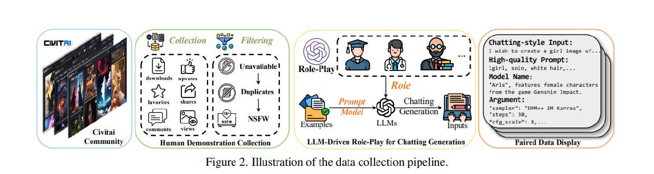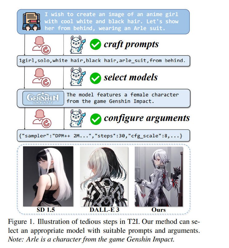 当非专家尝试创建具有特定要求的图像时,他们经常遇到一个涉及多个繁琐步骤的试错过程,包括:制定合适的提示、选择适当的模型和配置特定模型参数。