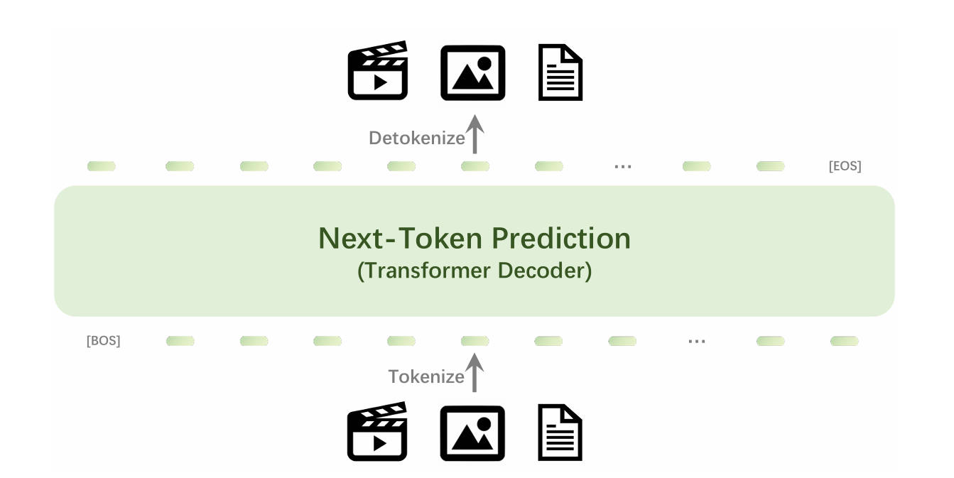 视觉Tokenizer: 将4x512x512的视频或512x512的图片转换为4096个离散Token;然后从大小为32768的词汇表中选择最相似的Token。